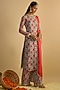 Featuring a blue and orange kurta in georgette base with floral print and hand embroidery. It is paired with pants and an organza dupatta. Style this set with soft waves and minimal jewelry, perfect for festive occasion or sangeet ceremony.