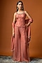 Featuring a burnt organza corset in silk base with boots and crystal hand embroidery. It is paired with crush palazzo pants and a georgette dupatta having hanging tassels detail. Accentuate it with a polki stud earrings, a potli bag and heels for festive occasions or sangeet ceremony.