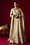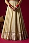 Featuring a gold lehenga in silk tissue base with lumpi border detail and banarasi strips. It is paired with a banarasi striped blouse having sequins embellishments, including a silk chiffon dupatta. Accentuate with polki jewellery and block heels for sangeet ceremonies or weddings.