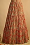 Green & Orange Georgette Floral Printed Gathered Lehenga Set