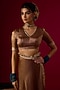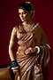 Featuring a mocha colored saree in silk tissue base with jhalar lace border detail. It is paired with a blouse and a satin underskirt. Accentuate with polki jewellery and block heels for sangeet ceremonies or weddings.