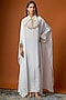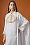 Featuring a white kaftan in pure crepe base with a wide collar, an attached cape and zari hand embroidery. Accentuate it with a polki stud earrings, a potli bag and heels for festive occasions or sangeet ceremony.