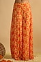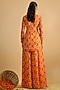 Featuring a yellow and orange short scalloped kurta in georgette base with floral print and hand embroidery. It is paired with palazzo pants and an organza dupatta having a chitta work. Style this set with soft waves and minimal jewelry, perfect for festive occasion, haldi or sangeet ceremony.