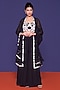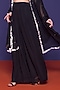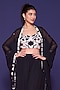 Featuring a black cape in georgette base. It is paired with a premium silk embroidered blouse and satin paneled trousers. Accentuate it with dangler earrings and block heels for festive occasions or sangeet ceremony.
