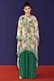 Featuring a botanical green kaftan in georgette base with print. It is paired with structured flared pants. Accentuate it with dangler earrings and mules for casual outings or family gatherings.