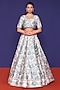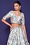 Featuring a botanical green lehenga in silk base with floral print. It is paired with a blouse and a dupatta. Accentuate it with polki jewellery and block heels for a wedding or mehendi ceremony.