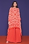 Featuring a rouge orange kaftan in georgette base with print. It is paired with structured flared pants. Accentuate it with dangler earrings and mules for casual outings or family gatherings.