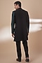 Black & Teal Green Japanese Suiting Fabric Sequin Embellished Sherwani Set