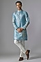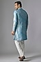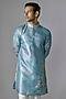 Featuring a blue kurta in tissue base with resham and kasab embroidery. It is paired with aligarhi pants. Accentuate it with polished mojaris and a classic watch for an elegant ensemble, ideal for weddings, festive celebrations or family functions.