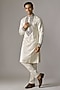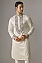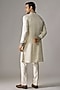 Featuring a cream kurta in slub satin base with zari embroidery. It is paired with aligarhi pants. Accentuate it with polished mojaris and a classic watch for an elegant ensemble, ideal for weddings, festive celebrations or family functions.