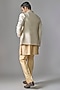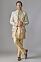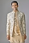 Featuring a cream indowestern jacket in tissue base with mirror and thread embroidery. It is paired with a kurta and pants. Accentuate it with classic mojaris and a sleek watch for a refined, modern look, ideal for weddings, receptions, or grand festive celebrations.