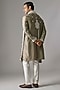 Featuring a greyish green kurta in premium silk base with thread embroidery. It is paired with aligarhi pants and a dupatta. Accentuate it with polished mojaris and a classic watch for an elegant ensemble, ideal for weddings, festive celebrations or family functions.