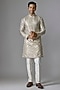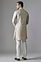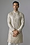 Featuring a light gold kurta in imported fabric base with thread, sequins, stone and cutdana embroidery. It is paired with aligarhi pants. Accentuate it with polished mojaris and a classic watch for an elegant ensemble, ideal for weddings, festive celebrations or family functions.