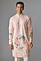 Featuring a peach kurta in silk base with french knot, sequins, pearl and cutdana embroidery. It is paired with aligarhi pants. Accentuate it with polished mojaris and a classic watch for an elegant ensemble, ideal for weddings, festive celebrations or family functions.