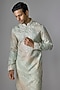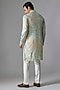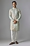 Featuring a peach kurta in textured fabric base with thread, sequins, pearl and cutdana embroidery. It is paired with aligarhi pants. Accentuate it with polished mojaris and a classic watch for an elegant ensemble, ideal for weddings, festive celebrations or family functions.