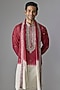 Featuring a red and white ombre kurta in silk textured base with zari, cutdana, mirror and sequins embellishment. It is paired with aligarhi pants and a dupatta. Accentuate it with polished mojaris and a classic watch for an elegant ensemble, ideal for weddings, festive celebrations or family functions.