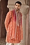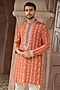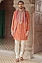 Featuring a rust kurta in tissue silk base with kasab, resham and mirror embroidery. It is paired with trousers. Style it with pair of mojaris for a festive occasion, wedding or engagement ceremony.