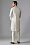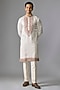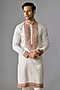 Featuring a white kurta in slub satin base with sequins, pearl and thread embroidery. It is paired with aligarhi pants. Accentuate it with polished mojaris and a classic watch for an elegant ensemble, ideal for weddings, festive celebrations or family functions.