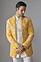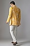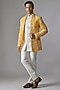 Featuring a yellow indowestern jacket in imported fabric base with cutdana, sequins and mirror embroidery. It is paired with a kurta and pants. Accentuate it with classic mojaris and a sleek watch for a refined, modern look, ideal for weddings, receptions, or grand festive celebrations.