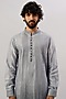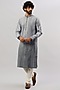 Featuring a grey kurta in chanderi silk base with side pockets and pintex work. It is paired with contrasting white churidar pants.