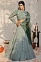 Featuring an olive green lehenga in viscose georgette base with moti, cutdana, and sequins embroidery. It is paired with a matching crepe silk blouse, a net dupatta, and a belt.