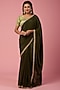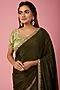 Olive Green Crepe Sequins Work Saree Set