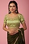 Featuring an olive green saree in crepe base with zari and sequins work. It is paired with a contrasting embroidered blouse. Accentuate it with statement jewellery and heels for a mehendi, pooja ceremony or festive occasion.