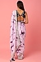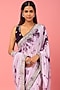 Featuring a purple saree in crepe base with shibori print, including mirror, zari and resham work. It is paired with a contrasting embroidered blouse.