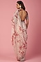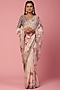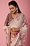 Featuring a white and cherry red saree in weaved organza base with resham, mirror, and zari work, including shibori print. It is paired with a matching red embroidered blouse.
