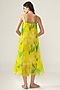 Yellow Viscose Crinkled Chiffon Botanical Printed Midi Cami Dress