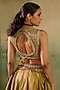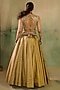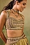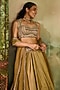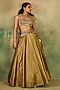 Featuring a beige lehenga in taffeta and tissue base with embroidered belt. It is paired with a blouse having banjara embroidery. Accentuate it with polki jewellery and block heels for a wedding or sangeet ceremony.