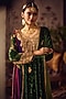 Featuring an emerald kurta in georgette and net base with zardosi hand embroidery. It is paired with salwar pants and a plush velvet dupatta. Accentuate it with delicate gold jhumkas, a coordinating clutch and classic heels for a stylish ensemble, ideal for festive gatherings, mehendi functions or celebratory evenings.