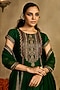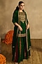 Featuring a forest green kurta in khadi silk and raw silk base with applique and banjara embroidery. It is paired with gharara pants and an organza dupatta. Style it with statement earrings, soft curls and block heels, perfect for festive gatherings or mehendi ceremony.