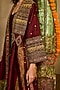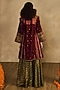 Featuring a multi-colored jacket in khadi silk base with banjara embroidery. It is paired with a maroon raw silk blouse and green khadi silk flared pants. Accentuate it with kundan polki jewellery and block heels for a festive occasions or sangeet ceremony.