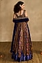 Featuring a midnight blue lehenga in silk velvet base with a scalloped border. It is paired with a raw silk blouse having boho embroidery and an organza dupatta. Style it with statement earrings, soft curls and block heels, perfect for a wedding, engagement or sangeet ceremony.