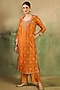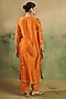 Featuring an orange kurta in chanderi base with gold embroidery. It is paired with pants. Accentuate it with dangler earrings and block heels for a festive occasion or pooja ceremony.