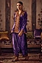 Featuring a royal blue kurta in silk velvet base with multi-colored resham and sequins embroidery. It is paired with salwar pants. Accentuate it with delicate gold jhumkas, a coordinating clutch and classic heels for a stylish ensemble, ideal for festive gatherings, family functions or celebratory evenings.