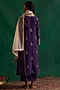 Featuring a deep purple kurta in habutai silk base with hand block print and hand embroidery. It is paired with matching pants and an ash grey organza dupatta.