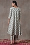 Featuring a mint bias-cut kurta in crinkled cotton silk base with pearl embroidery and hand block discharge print. It is paired with matching straight pants.