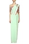 Pistachio Rose Embroidered Blouse and Pre Draped Saree Set