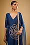 Blue Semi Dupion Sequins Embroidered Kurta Set