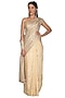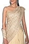 Featuring a gold metallic saree in crepe and mushroom base. It is paired with a blouse having gota embroidery and a petticoat. Accentuate it with statement jewellery and heels for a sangeet or engagement ceremony.