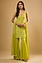 Featuring a green kurta in viscose georgette base with threadwork, sequins and glass bead embroidery. It is paired with sharara pants and a soft net dupatta. Accentuate it with jewellery, embellished heels and a potli bag for a wedding ceremony or festive occasions.