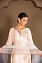 Featuring an ivory kurta in semi dupion base with cutdana, floral motif, pearl and sequins embroidery. It is paired with pants and an organza dupatta. Accentuate your kurta set with bold statement earrings and comfortable kolhapuri sandals for effortless ethnic charm.