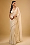 Featuring an ivory saree in viscose georgette base with glass bead and sequins embroidery. It is paired with a viscose crepe embroidered blouse and a butter crepe underskirt. Drape it with confidence, pair with statement earrings, sleek heels, and a minimal clutch for a timeless look.