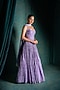 Featuring a lavender lehenga in viscose georgette base with cancan, sequins and glass bead embroidery. It is paired with an embroidered blouse and a soft net dupatta. Accentuate your lehenga with statement earrings, soft curls, and a vibrant potli for weddings.