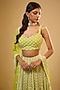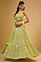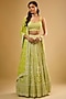 Featuring a lime green lehenga in viscose georgette base with glass beads, threadwork and sequins embroidery. It is paired with an embroidered blouse and a dupatta. Accentuate your lehenga with statement earrings, soft curls, and a vibrant potli for a festive ready look.