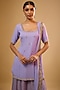 Featuring a purple kurta in viscose georgette base with sequins embroidery. It is paired with embroidered sharara pants and a soft net dupatta. Accentuate it with jewellery, embellished heels and a potli bag for a wedding ceremony or festive occasions.