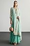 Ri Ritu Kumar presents an aqua blue lucknowi kurta in silk organza base. It is paired with a viscose georgette skirt and a net dupatta. Accentuate it with dangler earrings and heels for a festive occasion or a pre-wedding ceremony.