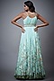 Featuring an aqua blue gown in viscose base with floral tropical print and hand embroidery.